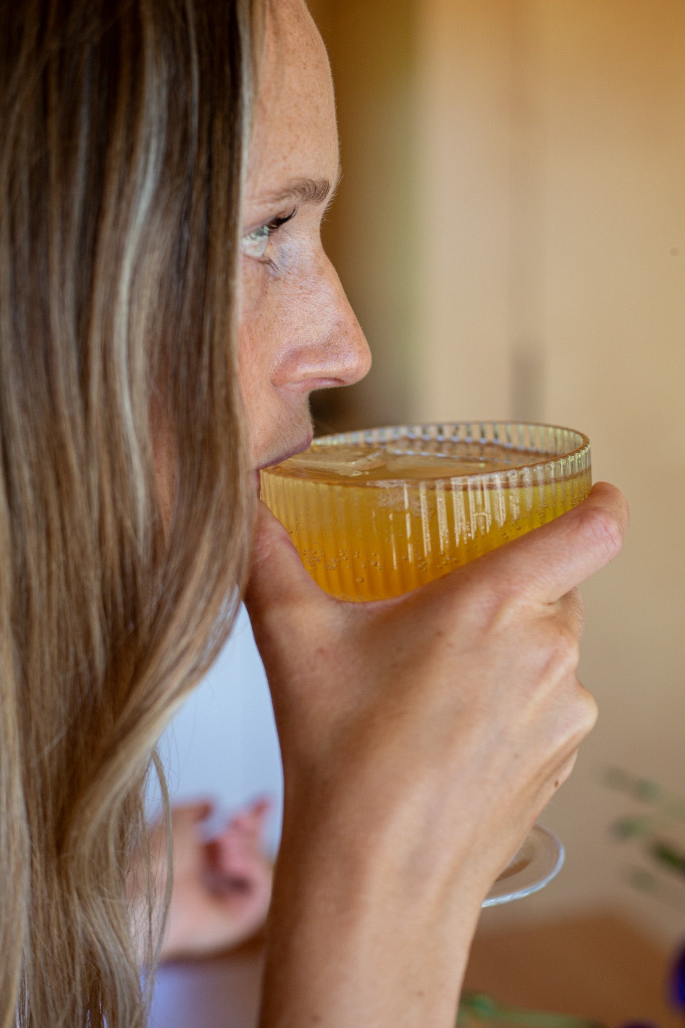 Add cider, lemon juice, nutmeg, cinnamon and apple slices to a saucepan over a high heat. Heat until warm and fragrant, then remove from heat and add to a tall glass with Hot Crossed Gin and lemon slices.