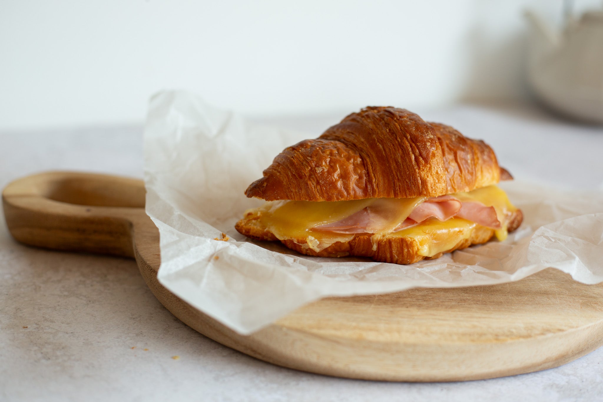 The ham and cheese croissant's widespread popularity stems from its simplicity and versatility, ideal for any meal. Adaptable and universally appealing, it brings comfort and flavour effortlessly. Our Traditional French Croissant elevates the experience with layers of 100% New Zealand butter, delicate flakiness, and a savoury twist, embodying Parisian essence for a versatile, timeless delight.