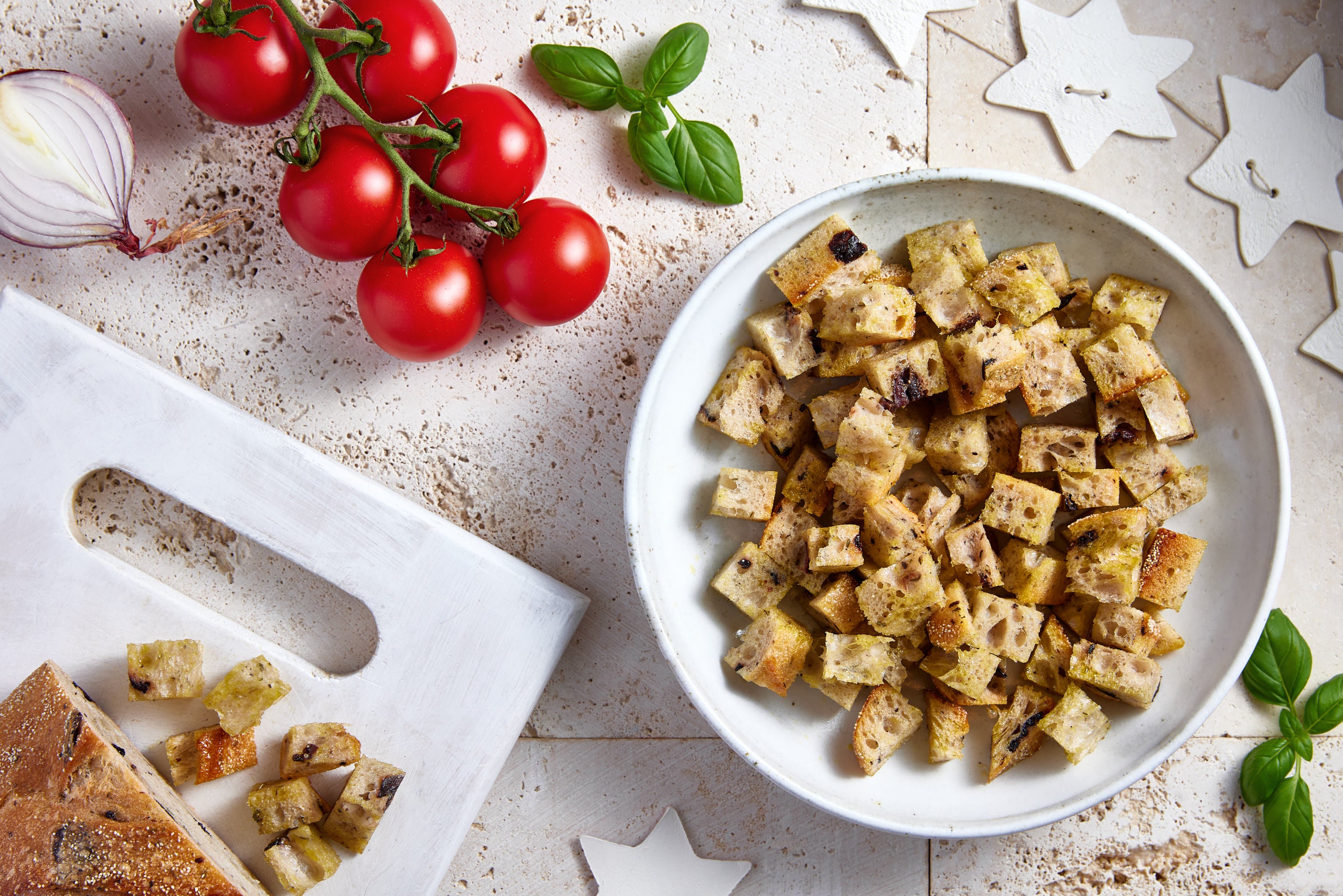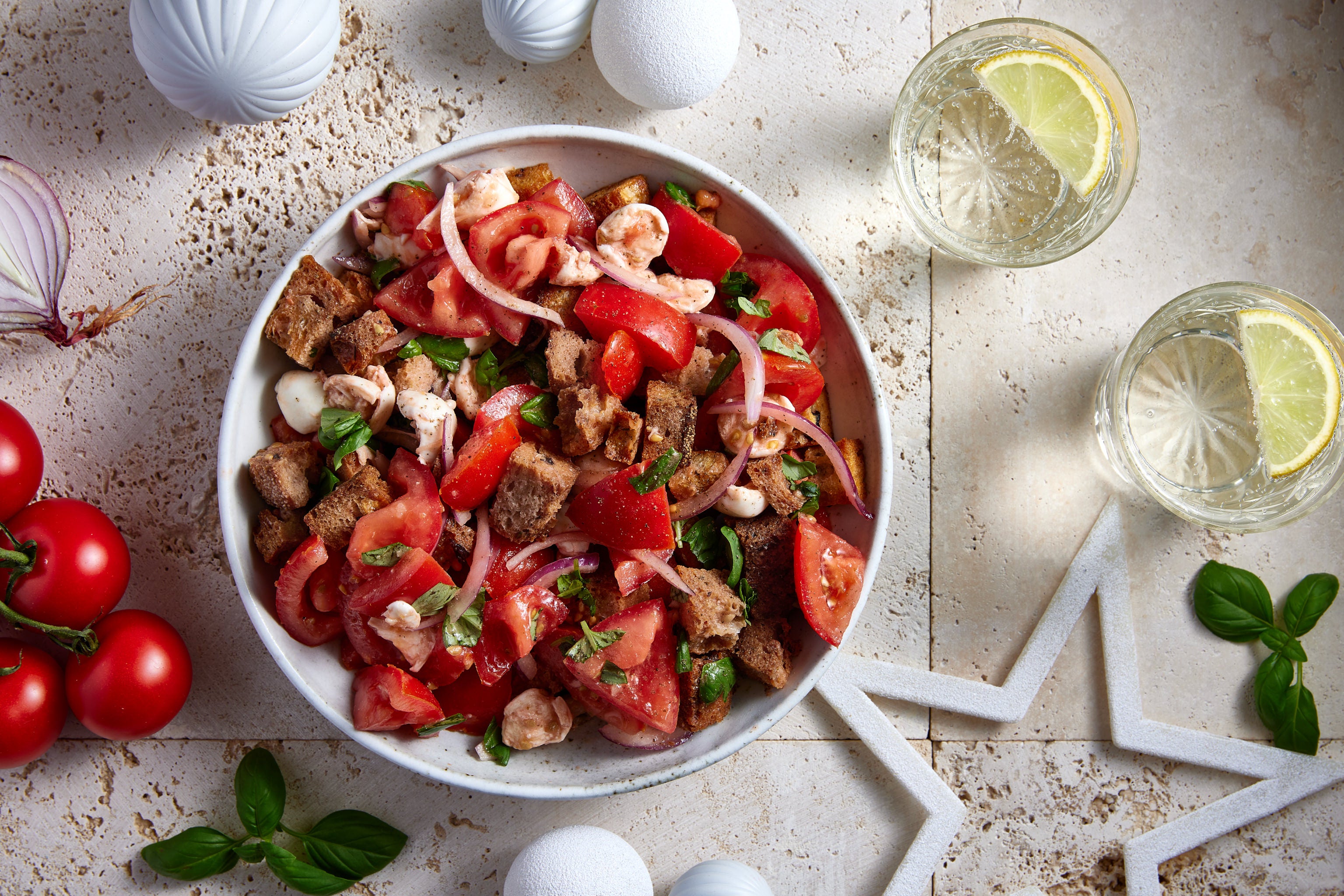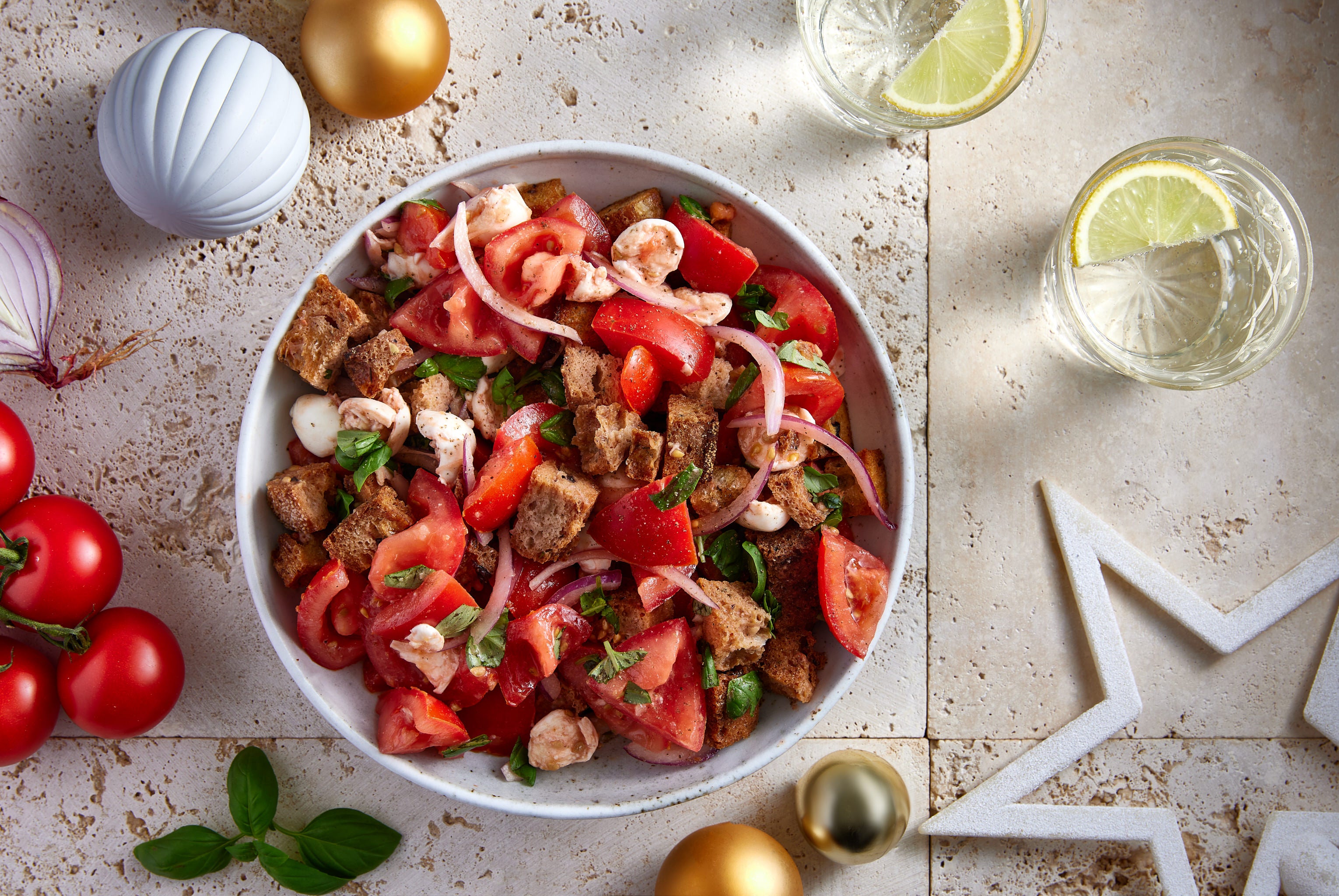 For an extra touch of flair, we recommend using our Olive and Thyme Sourdough. Its herby undertones and briny olive pieces take this classic to a whole new level. Whether you're hosting a casual BBQ or planning your contribution to Christmas lunch spread, Panzanella Salad is an easy, crowd-pleasing way to breathe new life into your Volare bread.