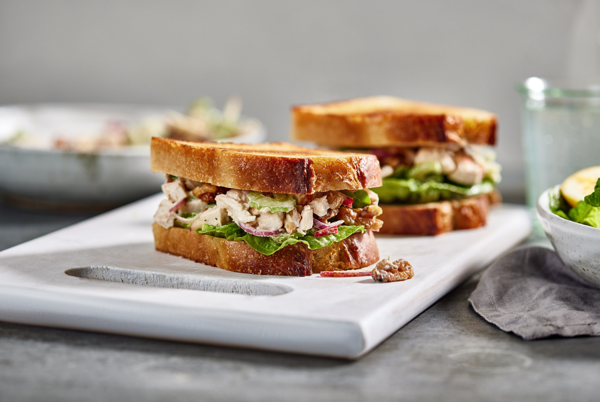 Named for the Waldorf-Astoria hotel where it first made its' debut in 1896, the Waldorf salad is a fruit and nut salad that's typically made of apples, celery and walnuts and then dressed in mayonnaise. Making a bit of a comeback in recent years, we've updated this timeless classic and paired it with our equally timeless San Francisco Sourdough for the perfect lunchtime meal.