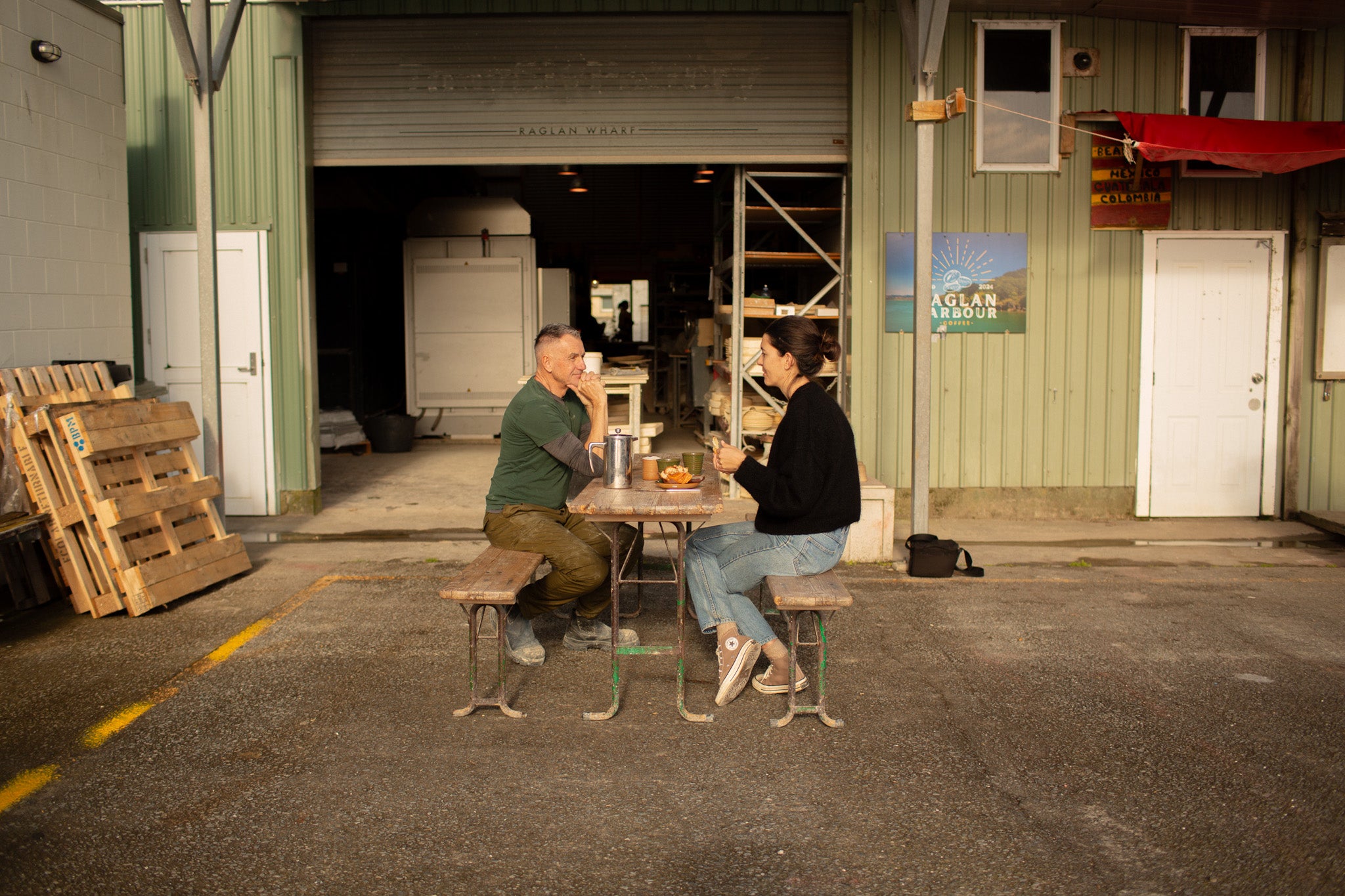 At Volare Bread, we are thrilled to announce our latest collaboration with the renowned Raglan potter, Tony Sly. Together, we've crafted a custom Latte mug featuring a unique glaze that perfectly complements our new branding. Recently, we had the pleasure of visiting Tony’s workshop at Raglan Wharf.